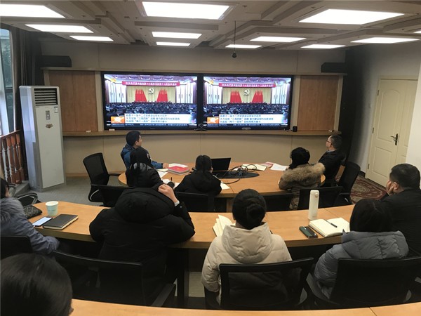 全体人员首先集体观看了湖南卫视关于省委十一届十二次全体会议专题报道视频。彭金波重点介绍了省委十一届十二次全体会议精神的基本情况,解读了《中共湖南省委关于制定湖南省国民经济和社会发展第十四个五年规划和二〇三五年远景目标的建议》的主要内容。他要求全院教职工认真学习、全面领会全会精神,切实把思想和行动统一到省委的决策部署上来,努力工作,为学院发展作出新的更大的贡献。