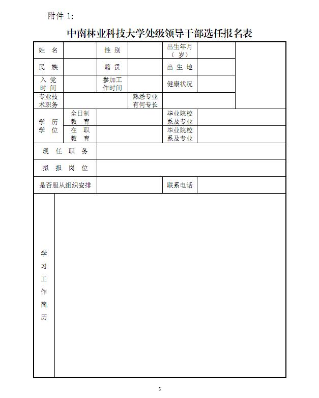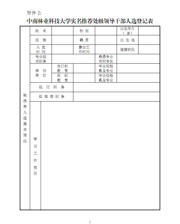 2.中南林业科技大学实名推荐处级领导干部人选登记表