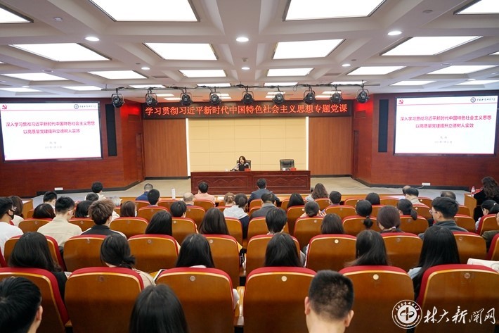 5月23日,学校党委副书记仇怡在博文楼立德厅讲授学习贯彻习近平新时代中国特色社会主义思想主题教育专题党课。党委组织部、党委宣传部、党委统战部、工会、期刊社、商学院、经济学院全体党员教职工和学生党员代表参加学习。党委组织部副部长蔡洁主持会议。