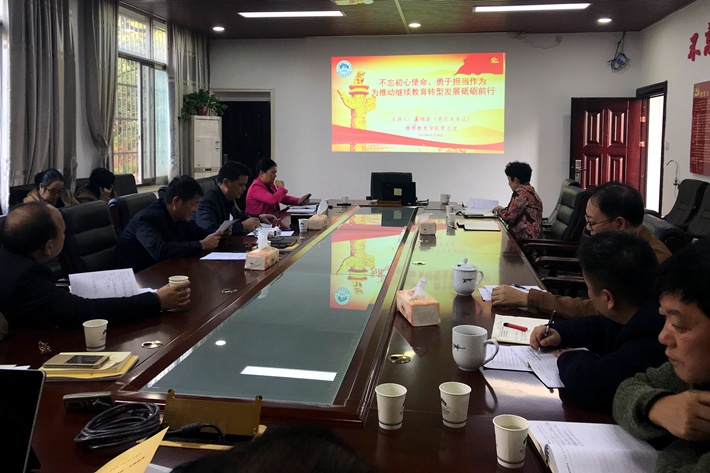 吴锦波讲到,一是要把习近平新时代中国特色社会主义思想与立德树人、培养什么人、怎样培养人、为谁培养人等当前工作紧密结合起来,为党和国家培养更多的合格建设者和接班人。二是要紧紧围绕成人高等学历教育、高等自学考试、合作办学和非学历教育培训“四驾马车”开展工作,齐心协力、齐头并进,为学校继续教育事业尽继续教育人的应有的责任。三是学院班子成员要凝心聚力,深入调查研究,广泛听取师生意见,反复论证做好继续教育转型发展这篇大文章,为学校继续教育事业更好更快的发展打下坚实的基础。